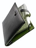 For the kindle obsessed, this cover is great. It folds back easily for reading when you can't sit down at a table. The leather is soft and cobbled, creating a Hemingway-esque worn in feeling. The pop of green is fun and there is contrast stitching on the black leather of the same green. It also has some convenient pockets (great for airline travel!) and a pen holder. The kindle is held in place securely with two corner shaped pieces of leather and two thinner pieces of leather with elastic, giving you access to all of the buttons on your kindle. It is easy to slip your kindle out to turn the power/whispernet on and off. Buy Genuine Leather Executive Case for Amazon Kindle 1 by bobarra (black)!