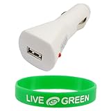 Non-OEM White Universal USB Car Charger Compatible with Amazon Kindle 2 eBook / Book Reader + Bonus Young Micro TM - Live Green WristBand
